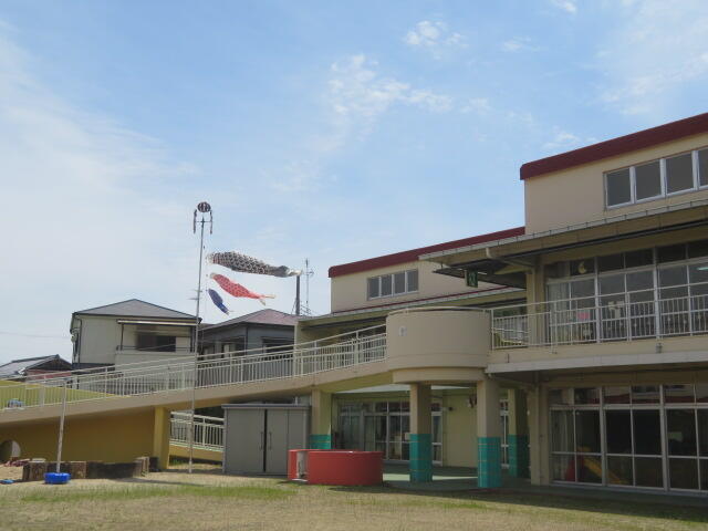 幼稚部の校庭に、元気にこいのぼりがあがりました。青空で泳いでいるこいのぼりは、子どもたちの注目の的で、 「こうちょうせんせい、みて、ほら、こいのぼり!」と教えてくれます。 紙と絵の具で、子どもたちがこいのぼりを作って飾っていました。教室内も春らしく、季節を感じる楽しい雰囲気が広がっています。