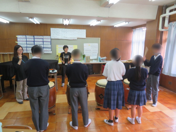 文化祭での舞台発表へむけ、和太鼓の練習に励んでいます。