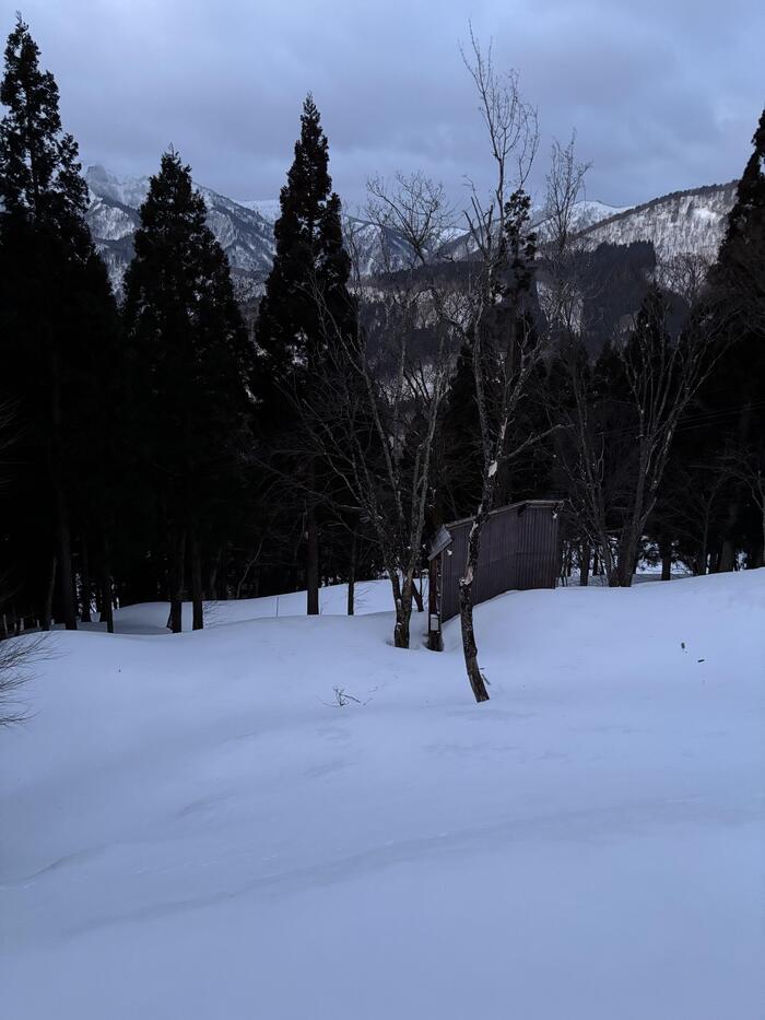 2日目の朝、窓から外を見ると一面に新雪が積もっています 前夜は、夕食後にダンスや3チームによる企画などのレクリエーションで大盛りあがり。チームで協力する姿や笑い声が絶えず、学年を越えて楽しむ姿が見られました。