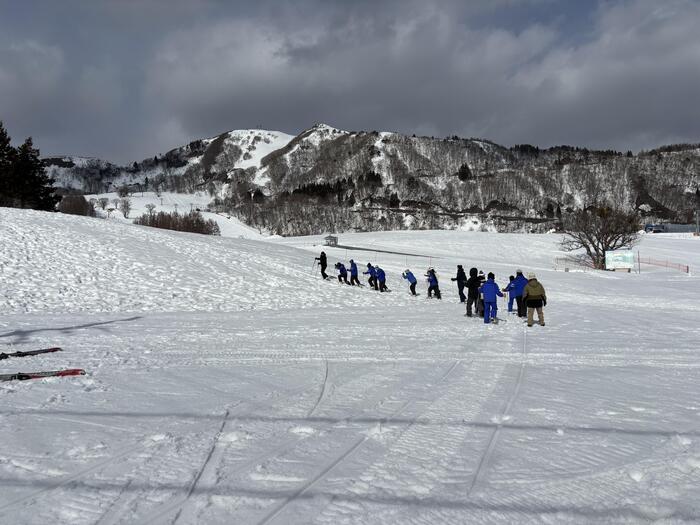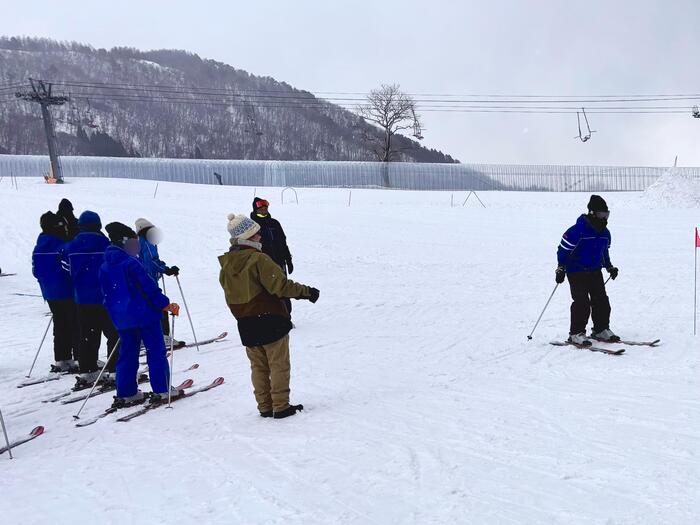 初めてスキー板をつける生徒は、最初のうちはバランスを取るのが難しく、転んでしまう姿も見られました。何度も起き上がり、インストラクターの先生方に基礎から丁寧に教えていただきました。雪の上での活動は普段とは違う動きが多いため、体の使い方に戸惑いながらも、一生懸命に取り組む姿がとても印象的でした。