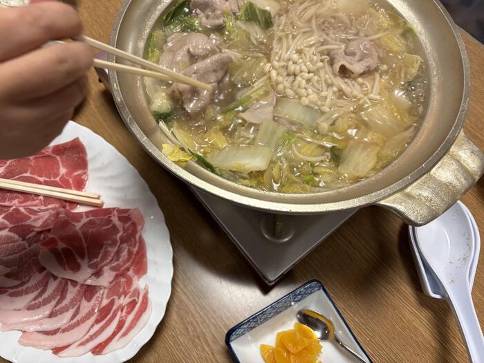 スキー講習一日めを終えて宿舎に戻り入浴タイム。冷えた体を湯船でゆっくり温めました。入浴後は部屋でカードゲームなど楽しみながら過ごしてお待ちかねの夕食です。メニューは、体の芯から温まるお鍋。美味しそうな豚肉をいただきながら鍋を囲んで笑顔が広がりました。何杯もご飯をおかわりする生徒もいて、しっかりエネルギーを補給することができました。