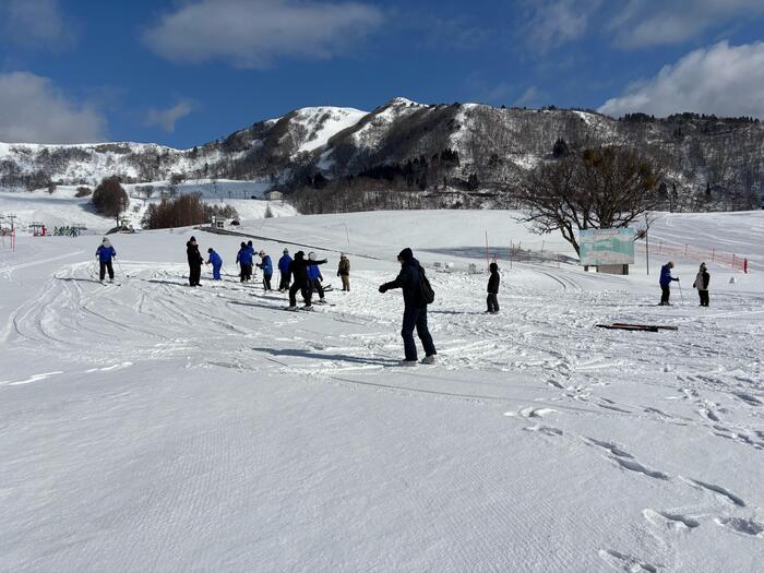 到着後は、まずはしっかり腹ごしらえ。みんなでチャーハンをいただきました。 食事を終えると、いよいよスキー学習に向けて準備開始。スキーウェアに着替えて気持ちも一気に「スキーモード」に切り替わりました。 スキー学習がスタート。初めてスキーに挑戦する子も、経験のある子も、グループに分かれて講師の先生方に教えてもらいながら体験しています。