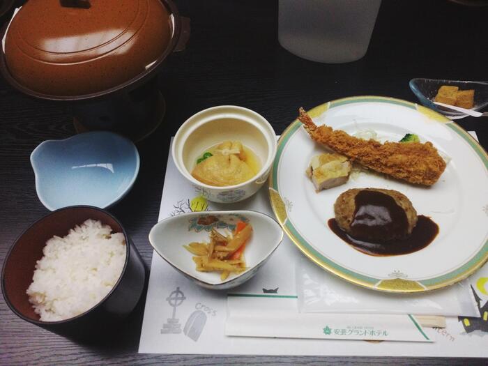 宿泊先の安芸グランドホテルに到着 雨は時々降ったものの、傘を使うことなく一日めの活動ができたようです。