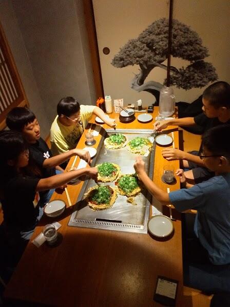 昼食は広島焼。ネギがたくさんのっていておいしそう。