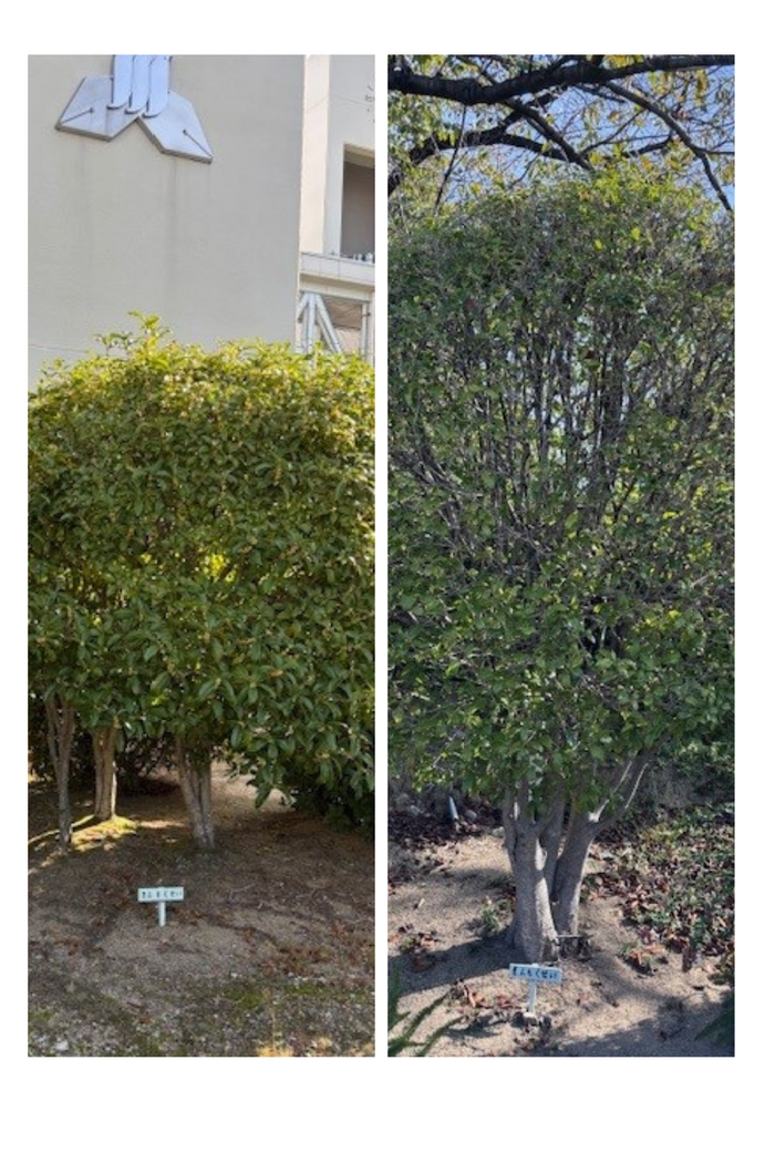 校内にキンモクセイとギンモクセイがあります。 10月下旬ごろから校内に甘い香りが漂ってきました。 日本ではキンモクセイが有名ですが 中国ではギンモクセイが圧倒的に多く、 「桂花」とよばれ、お酒にもなり親しまれているそうです。