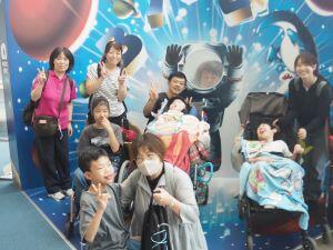 ワニの骨格の中を探検、トランポリンや橋渡りを楽しみ、大きな口のひらいたワニの前ではみんなで記念撮影をしました。