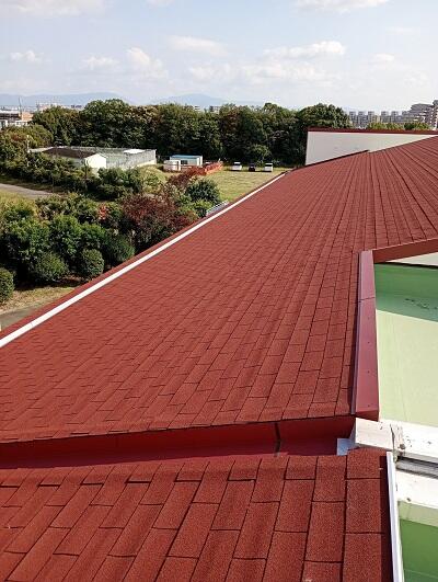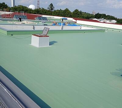 屋上の塩ビシートも施工が進んでおり、屋根がだんだんときれいに仕上がってきています。