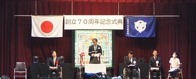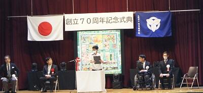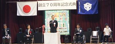 10月18日(土)、本校の創立70周年記念式典が開催されました。児童生徒・保護者・教職員に加え、府教育庁教育振興室長、歴代校長、同窓会長、自治会の皆様など、多くの来賓の方々にご臨席いただきました。