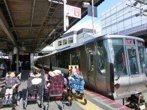駅の券売機で一人ずつ切符を買い、電車に乗りました♪百舌鳥駅から鳳駅まで「しずかにのる」という約束どおり、みんな静かに乗ることができました。今回初めて電車に乗った児童もいました。移り行く車窓に目をやり、ドキドキ・ワクワクの電車体験でした♪