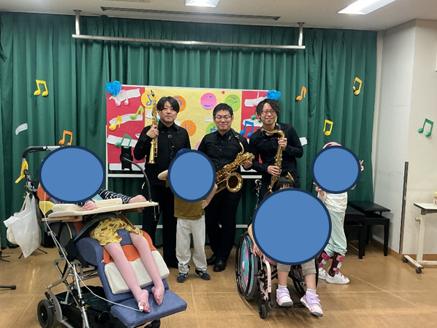 本物の音楽を通して、子どもたちの豊かな心と創造力の育成の一助となることを目的とし、NPO法人ミュージック・シェアリングを五嶋みどりさんが設立されました。その訪問プログラム2025秋として10月28日(火)に大手前分校に3名の演奏者の方と送迎ボランティアの方1名が来校され、サクソフォーンの生演奏の鑑賞会がありました。