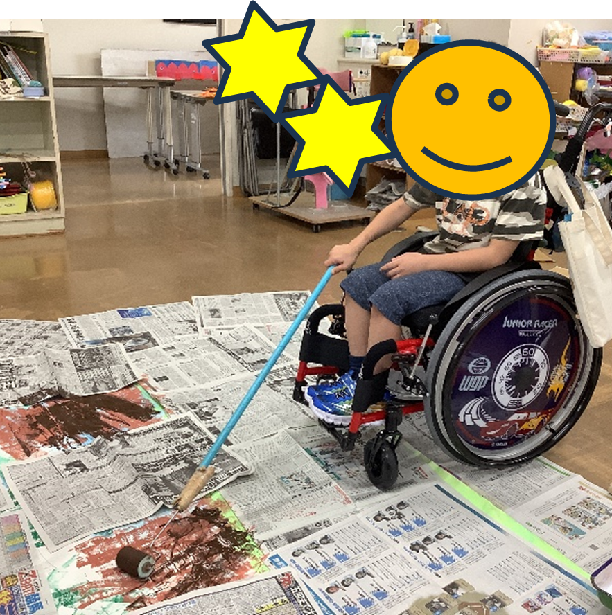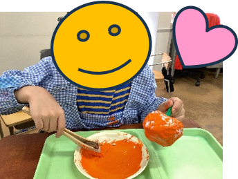 小学部1~3年生では、12月の学習発表会に向けて、背景画や劇中で使うさまざまなものを授業で制作しました。背景画では、ローラーを使い、森の木や草地を描いていきました。どの子もしっかりローラーを握って動かし、とってもすてきな「森」の絵ができました。木の実づくりでは、新聞紙を丸めたり、絵の具で色付けしたりして、カラフルな「実」がたくさんできました。劇のストーリーは、森の仲間たちで、おたんじょうびパーティをする内容です。大きなケーキもみんなでつくりましたよ!!ぜひ、本番をおたのしみに~♡♡