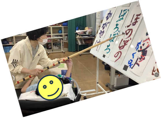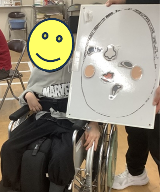 書初めでは、新年に向けての抱負や思いを水彩絵の具で模造紙に書き表しました。見事な筆さばきで書くことができました。福笑いでは、「おかめ」の顔パーツを上から落として行いました。太神楽の傘回しでは、風船を傘の上に置いて回しました。皿回しでは、お皿の仕掛けのおかげで大成功。
