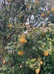 梨(かりん)の木にたくさんの果実が実りました。芳香な香りに引き押せられました。