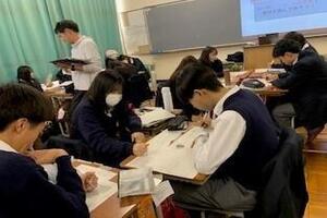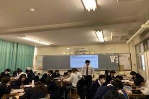 世界史探究の授業でジクソー法を使い「モンゴル帝国の拡大によって起こった変化は人類史においてどのような影響を持っていたかを考察する」という研究授業でした。3種の資料について班に分かれて課題を理解し、他の班のメンバーに説明する活動を通して理解を深めていました。