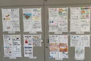 発見Ⅱの授業で「壁新聞グランプリ」を開催中です。就学旅行で訪れる沖縄について班ごとにテーマを決め、調べた内容を壁新聞にまとめて展示しています。イラストや文章も工夫し、みんなが興味を持てる内容になっています。投票して順位を決め、修学旅行のレクリエーション時に表彰予定です。