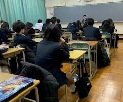 放送での始業式に生徒の皆さんは耳を傾けていました。この3学期の努力や頑張りが本年度を締めくくると同時に今年1年の新たな幕開け、スタートになると式辞で話しました。始業式終了後は書道の授業作品の表彰などがあり、引き続き3学期の授業が始まりました。
