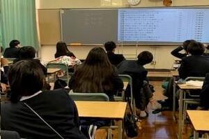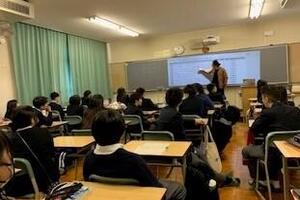 始業式後、続けて3学期1回目の「現代の国語」の授業です。言語活動を通じて国語で的確に理解し効果的に表現する力を育む科目です。生徒各々が作成した俳句をクラスのみんなで観賞したり、次回から学ぶ教材「語感」の楽しみ方を理解していました。