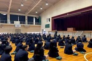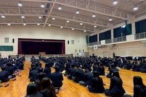 "新3年生の皆さんにとっては、自分の将来に向かって具体的で実践的な一歩を踏み出す1年間となります。新2年生の皆さん、今年は自分の可能性を追求し、挑戦する1年としてください。"という言葉かけから始まりました。