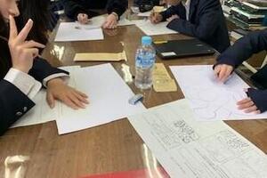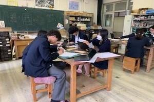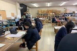 デザイン画や絵画などの創造活動を通して、1、2年生で学んだ表現力をさらに深める授業です。今回はアルファベットの文字の構成と色彩を考えながら仕上げます。