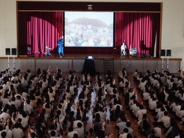 本日は生徒向け人権行事が行われ、「まーちゃんバンド」の方々に講演およびライブをしていただきました。