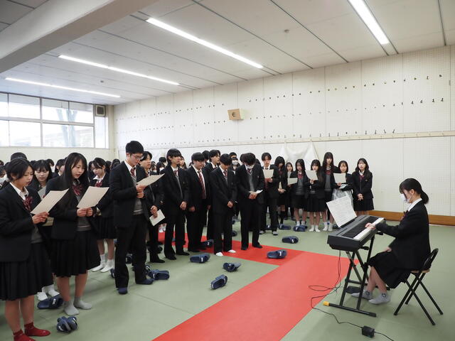 こんにちは。狭山高校ブログ担当です。 本日、3年生は久々の登校日でした。 せっかくなので卒業式に向けて歌の練習をしました。