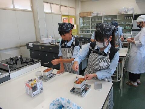 10月2日(木)、生活科学系列で学ぶ3年生がメスティン(アルミ製の飯ごう)でトマトパスタを作りました。