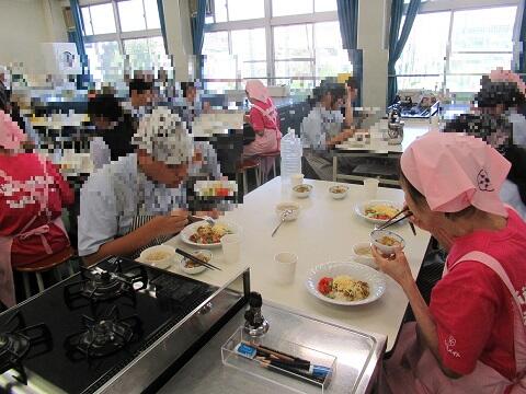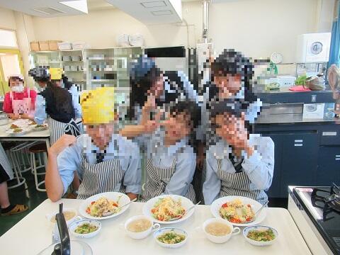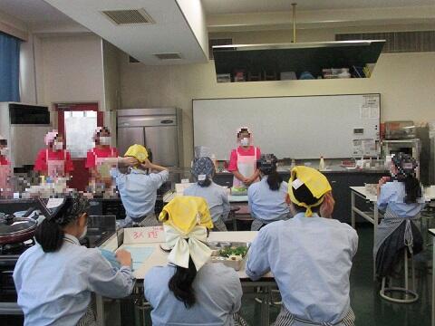 10月9日(木)、城東区食生活改善推進員協議会の方々をお招きし、生活科学系列の3年生が「タコライス・レタスとベーコンのスープ・ブロッコリーとジャガイモのパン粉焼き」の調理実習をしました。
