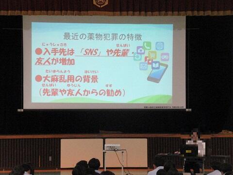 10月23日(木)中央少年サポートセンターより講師をお招きし、3年生に薬物乱用防止講演を行いました。近年薬物事案が多くなっており、改めて危険性や依存性について学びました。
