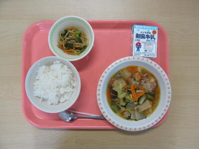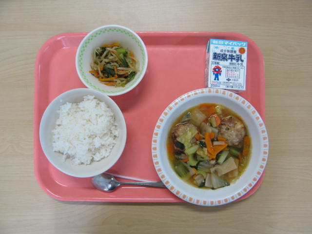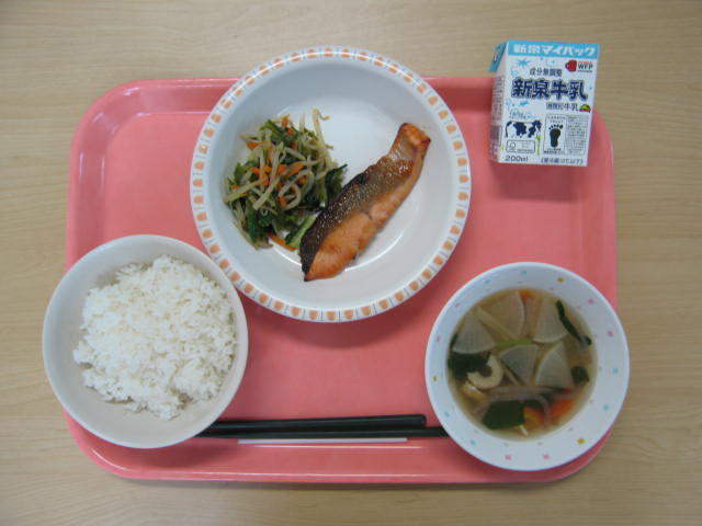 9月16日(火)は、牛乳、ごはん、さけのみそ焼き、チンゲン菜ともやしのソテー、のっぺい汁、でした。