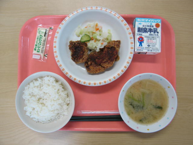 9月19日(金)は、牛乳、ごはん、とりのから揚げ、青菜の煮びたし、みそ汁、でした。
