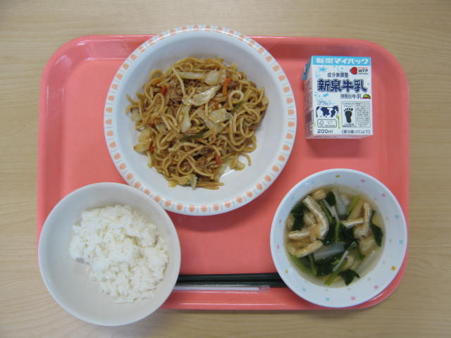 9月18日(木)は、牛乳、ごはん(小)、切干入り焼きそば、きつね汁、でした。