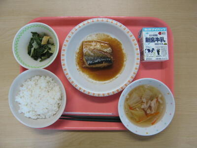 9月25日(木)は、牛乳、ごはん、さばのみそ煮、しろなの煮びたし、白菜汁、でした。