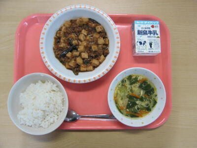 9月26日(金)は、牛乳、ごはん、豚肉とピーマンのピリ辛炒め、かぼちゃの甘煮、すまし汁、でした。
