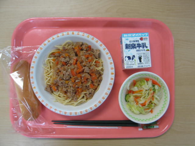 10月21日(火)は、牛乳、コッペパン、ボロネーゼ、野菜サラダ、でした。