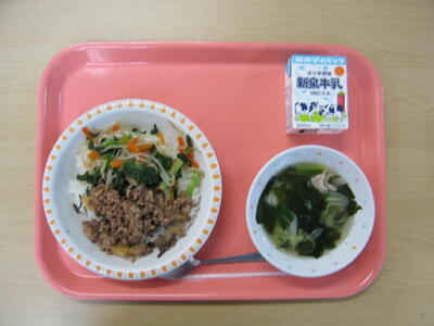 10月27日(月)は、牛乳、ビビンバ、わかめスープ、でした。