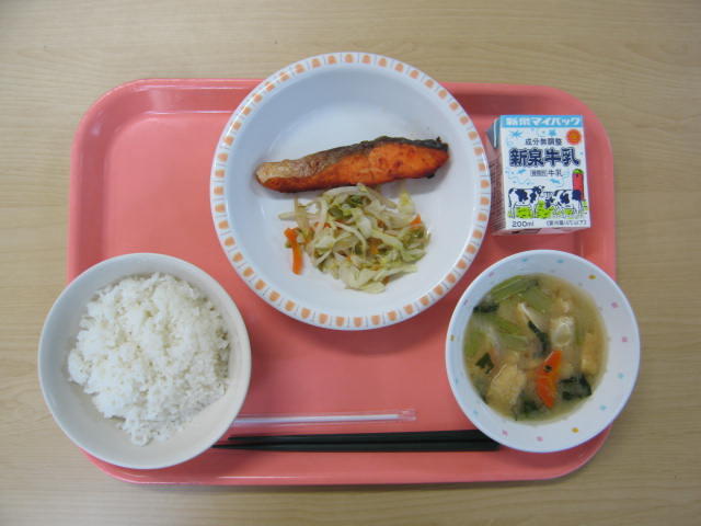 11月4日(火)は、牛乳、ごはん、さけのパプリカ風味焼き、野菜のソース炒め、みそ汁、でした。