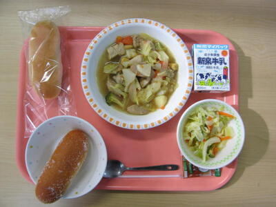 1月14日(水)は、牛乳、コッペパン(小)、揚げパン、カレー風ポトフ、野菜サラダ、でした。