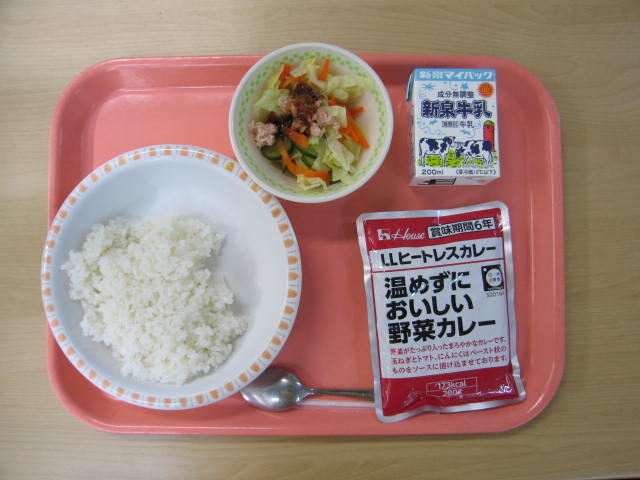 1月23日(金)は、牛乳、ごはん、非常用パックカレー、ツナサラダ、でした。
