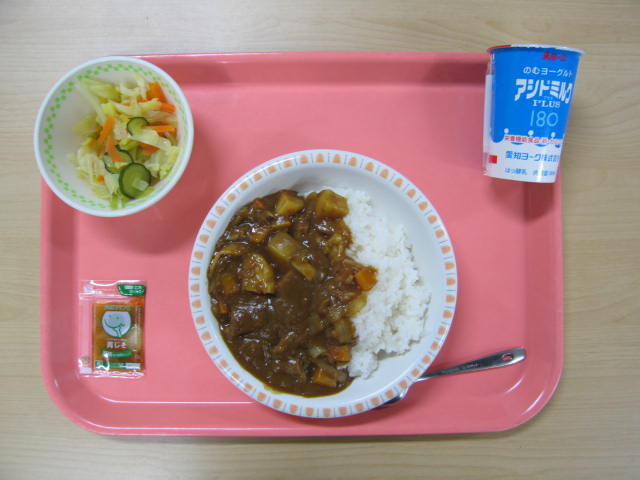 2月26日(木)は、飲むヨーグルト、牛すじのカレーライス、野菜サラダ、でした。