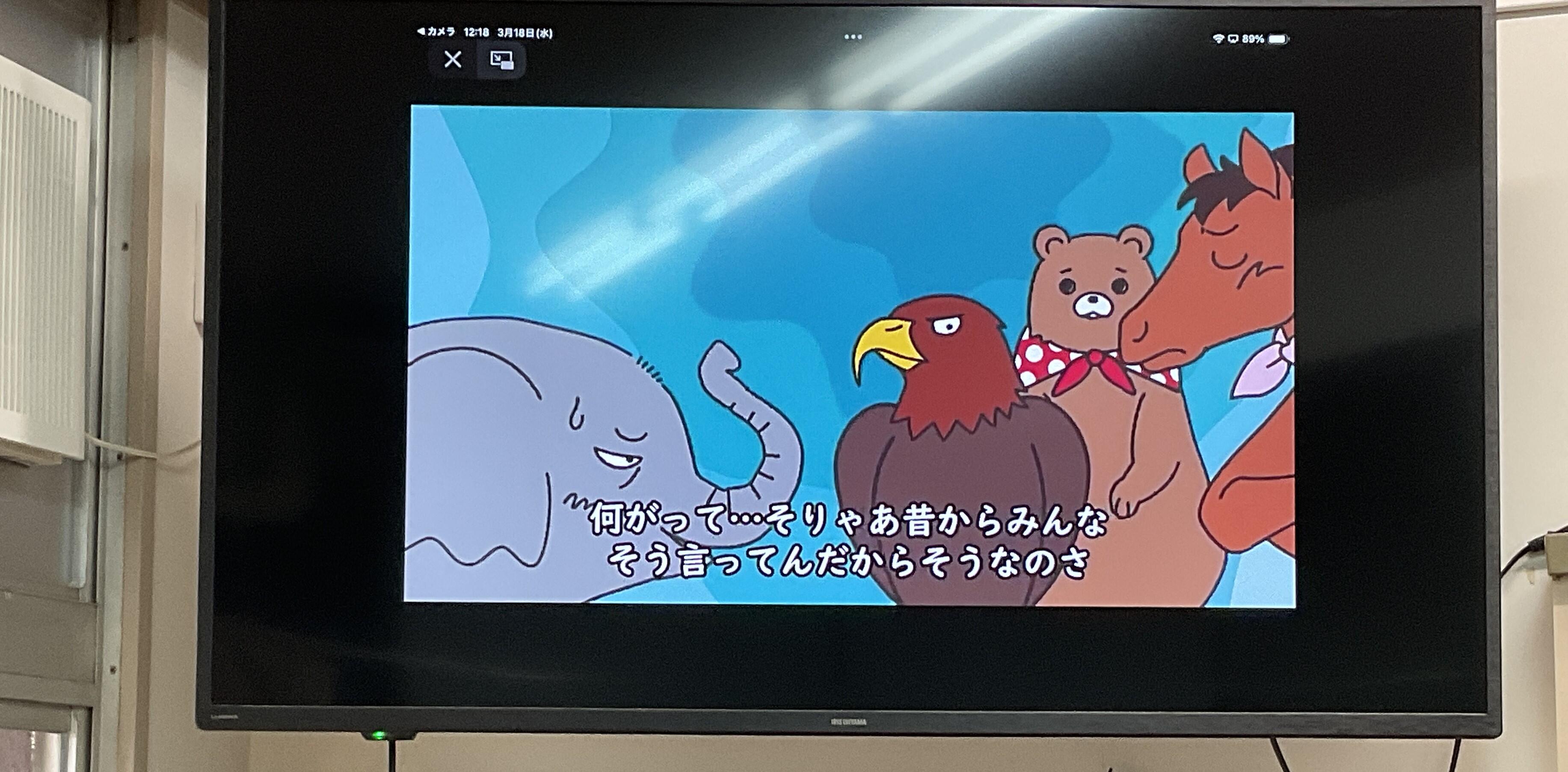 1月16日(金)3時間め、3年生で人権学習を行いました。同和問題について北九州市人権問題啓発推進協議会様が作成した「モモマルくんと考えよう」という動画を見て学習しました。