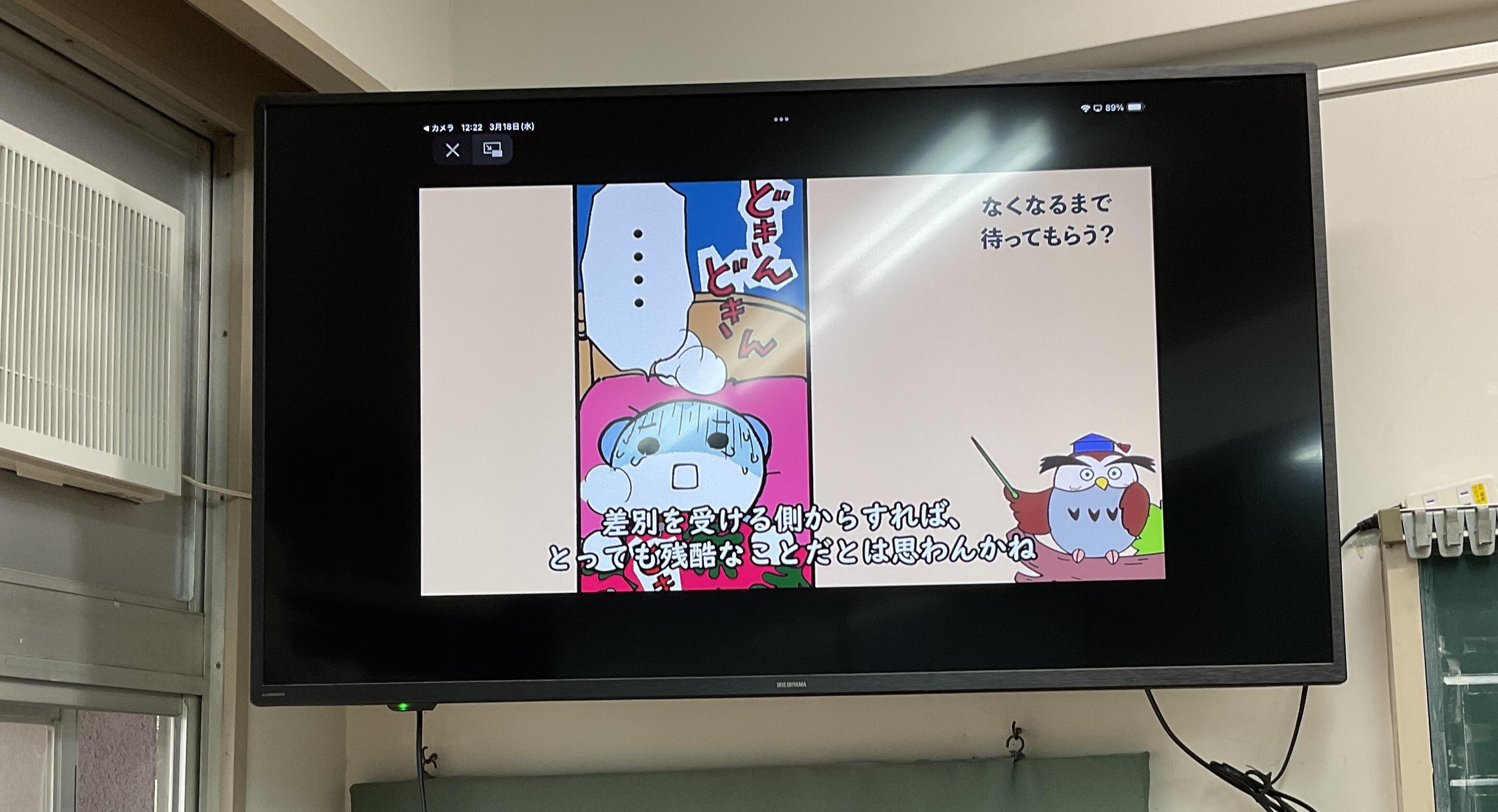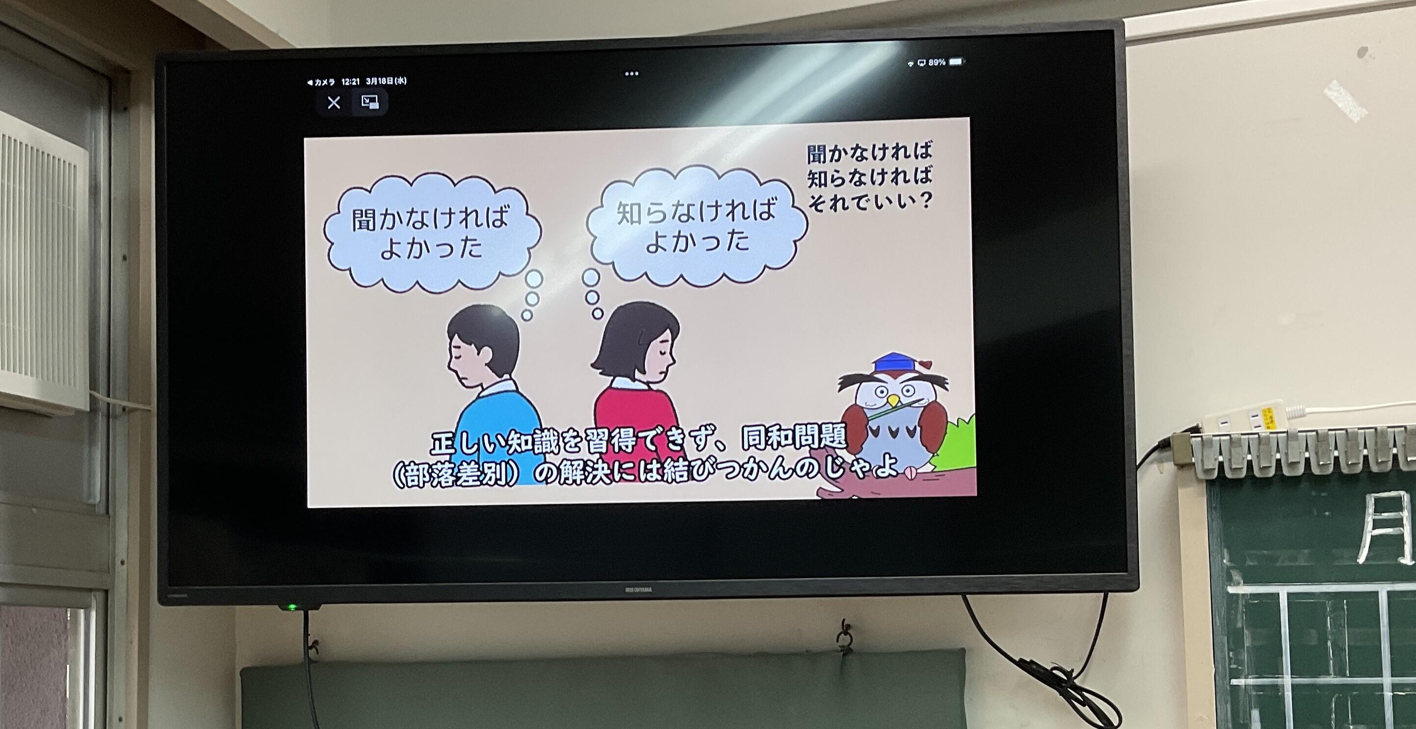 「正しい情報を知る」「差別は絶対に許さない」そのようなことを生徒たちと一緒に考えました。