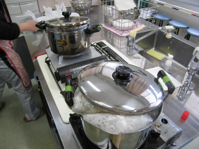 3、4時間めと同時にPTA主催で防災クッキングを行いました。アイエヌ栄養企画様より講師の先生をお招きし、少ない水でも栄養価の高い普段と変わらない食事を作ることができる「パッククッキング」についてご講義いただきました。4班に分かれ、それぞれ異なる献立を作りました。袋の中に食材と調味料を入れて空気を抜いて沸騰した鍋に入れるだけのとっても簡単な調理でしたが、どの班も主食・主菜・副菜・デザートのそろった豪華な食事ができあがりました。
