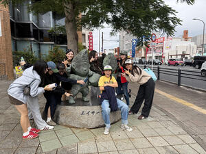 米軍基地が多数存在するコザ市観光や、ひめゆりの塔やガマ体験、そしてビーチクリーンではスコールに遭いながらも真剣な表情で現地のツアーの方のお話を聞いていました。