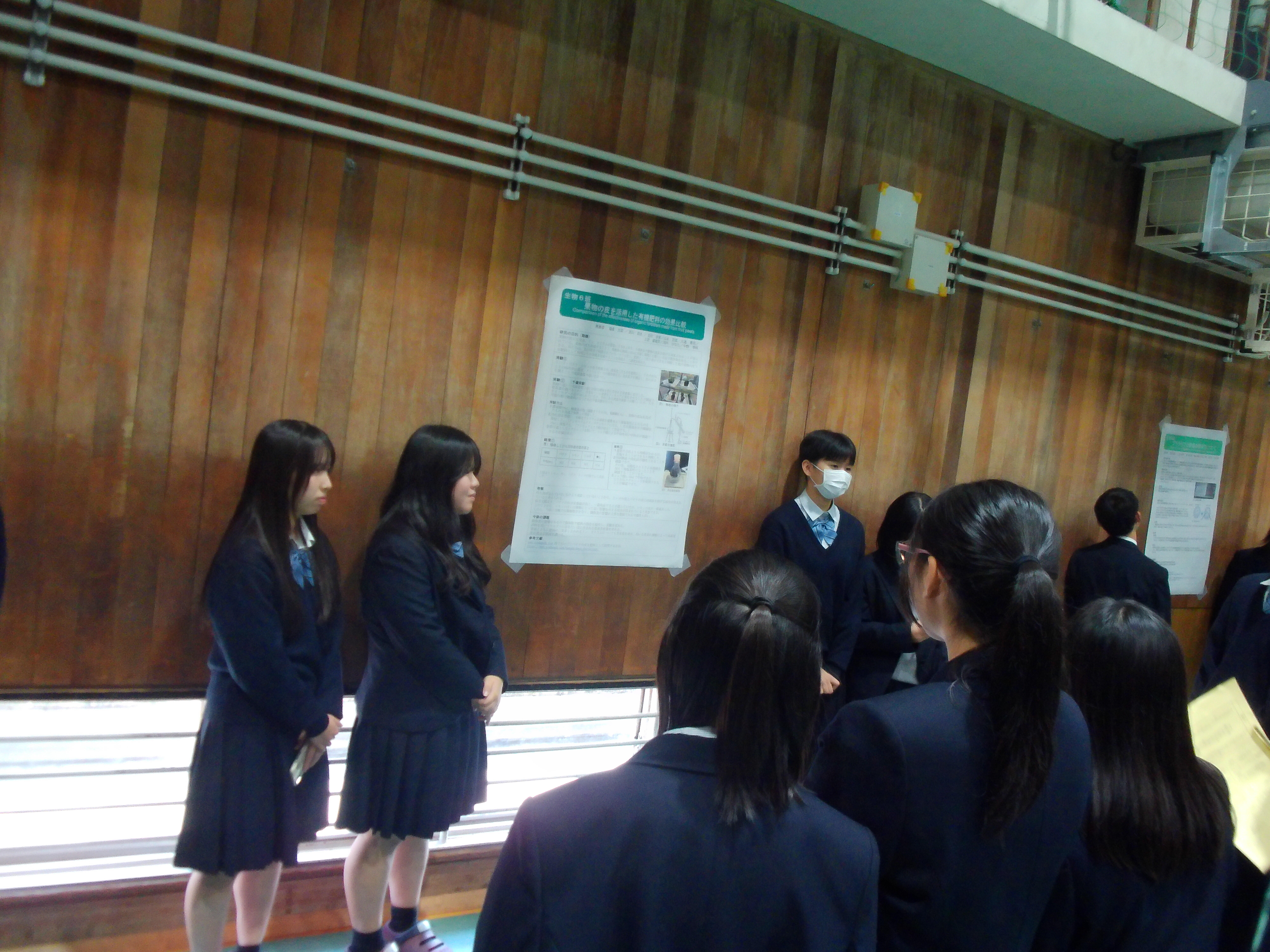 今回は総合科学科と国際文化科の交流という形で、国際文化科の3年生の代表班にもポスター発表をしてもらいました。