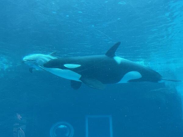 1日めは、名古屋港水族館。日本で最大のシャチが悠々と泳ぎ、イルカショーも迫力満点でした。宿泊先は、知多半島の海沿いのホテルでした。