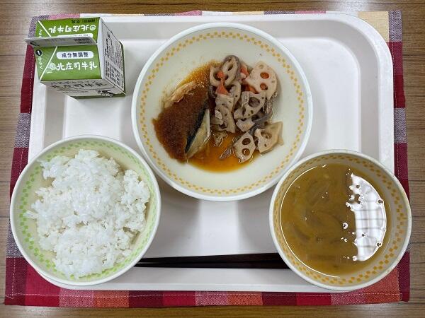 さて、本日の給食の献立です。 秋が旬でもある「さば」が登場しました。