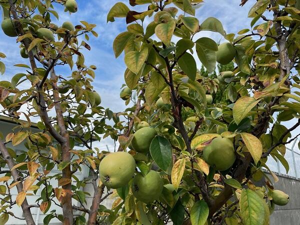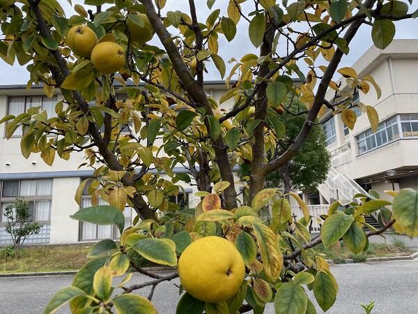 校庭の花梨の実が熟してきました。花梨の花の花言葉には、「努力」などもあるそうです。