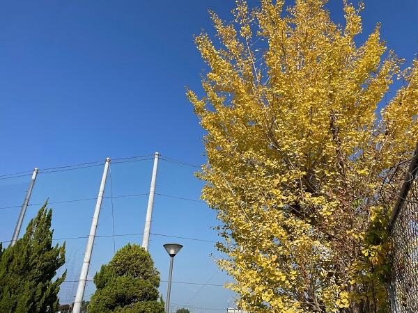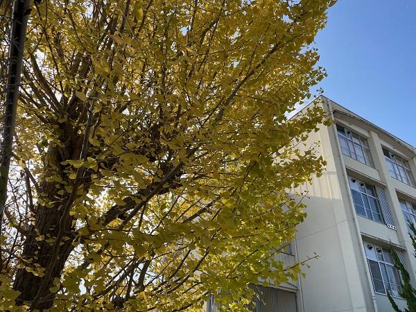 校庭のイチョウの木も、キラキラした黄色で、色鮮やかに色づいています。