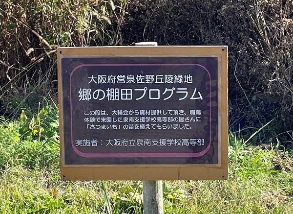 泉佐野丘陵緑地の棚田で、芋ほり(サツマイモ)を体験しました。