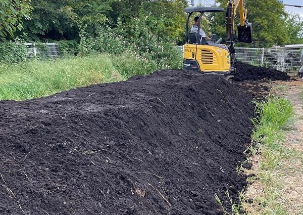 和歌山河川国道事務所紀の川下流出張所より、腐葉土をいただきました。堤防の刈草をリサイクルした腐葉土です。本校の農園に、たくさん運んでいただきました。